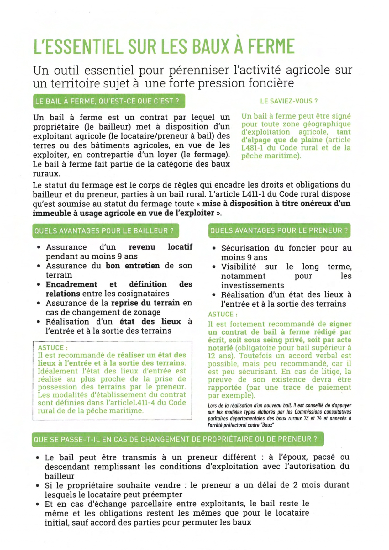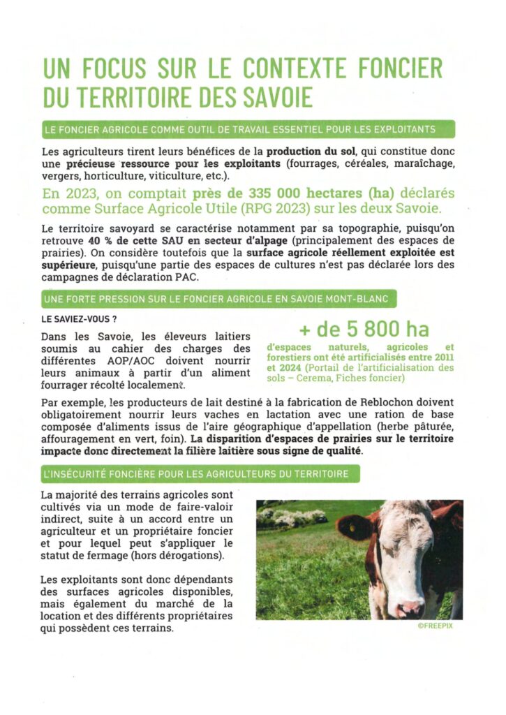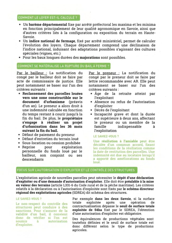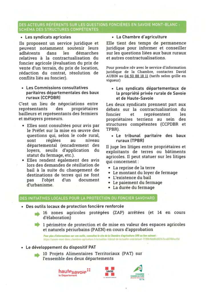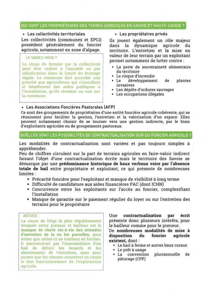 Mise à disposition des terres agricoles 3 Brochures d’information : Contexte foncier agricole savoyard Statut du fermage Conventions pluriannuelles de pâturage