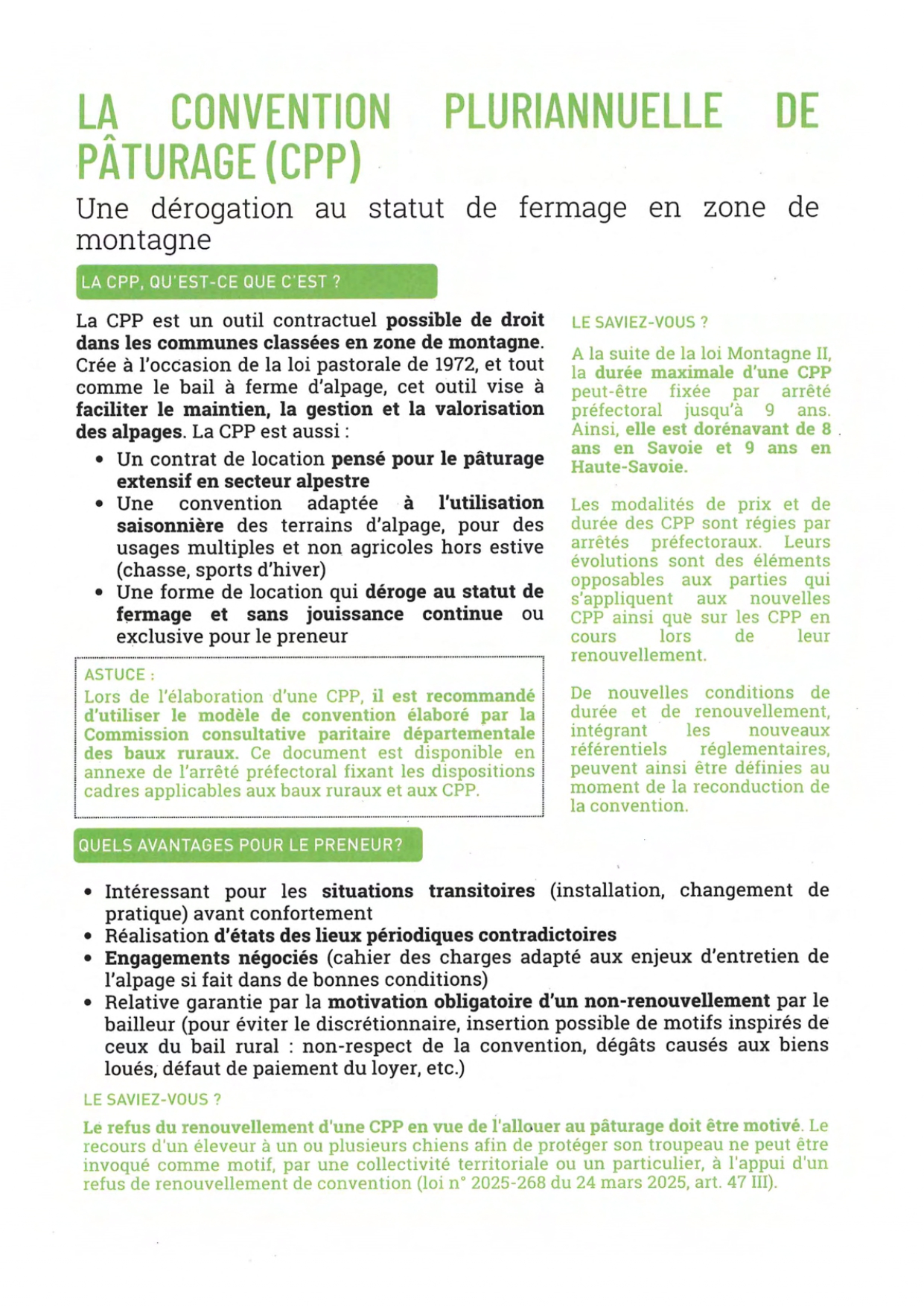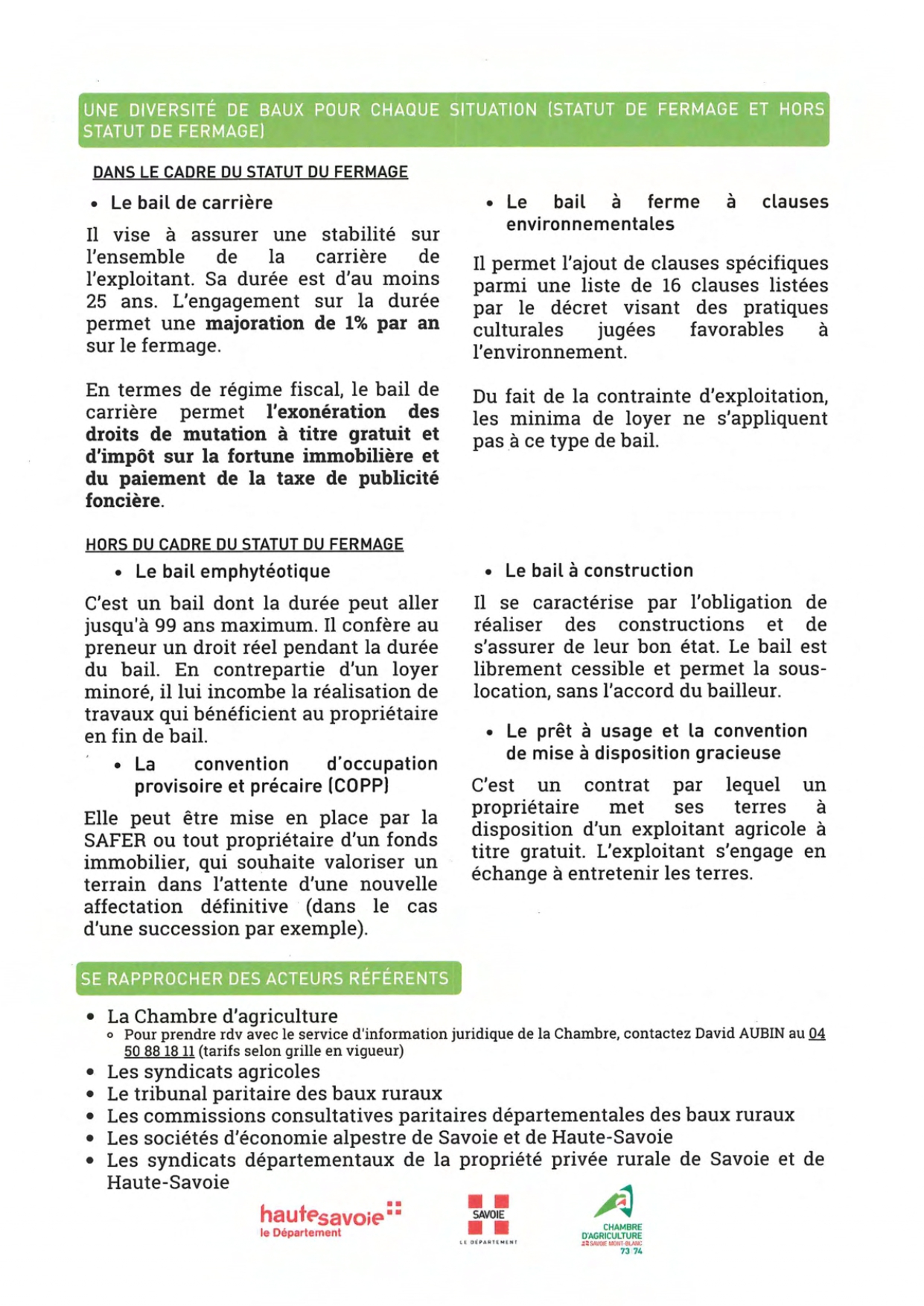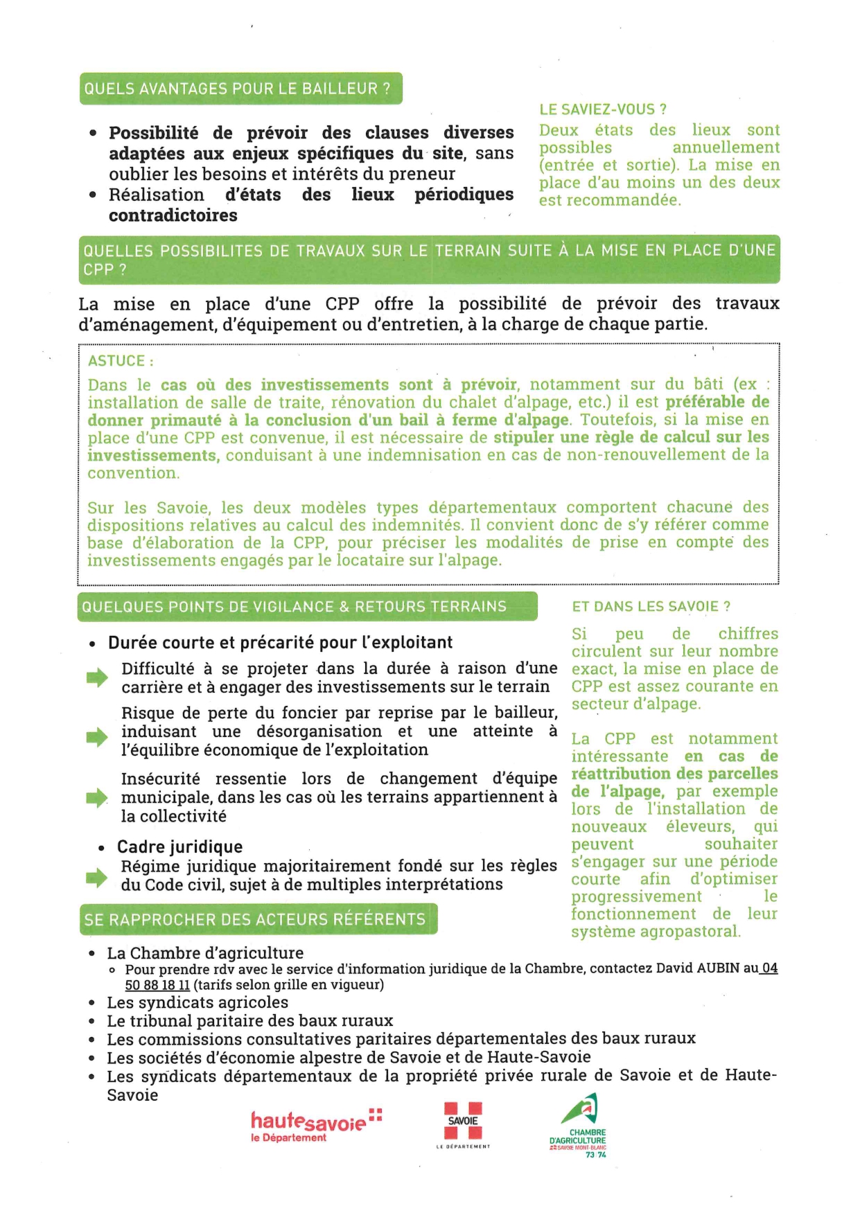 Mise à disposition des terres agricoles 3 Brochures d’information : Contexte foncier agricole savoyard Statut du fermage Conventions pluriannuelles de pâturage